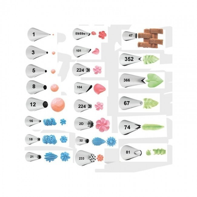O conjunto de luxo inclui 22 bicos de decoração para uma variedade de opções de decoração. Além disso, ele contém um adaptador padrão e um prego de metal para flor de 3,2cm.
