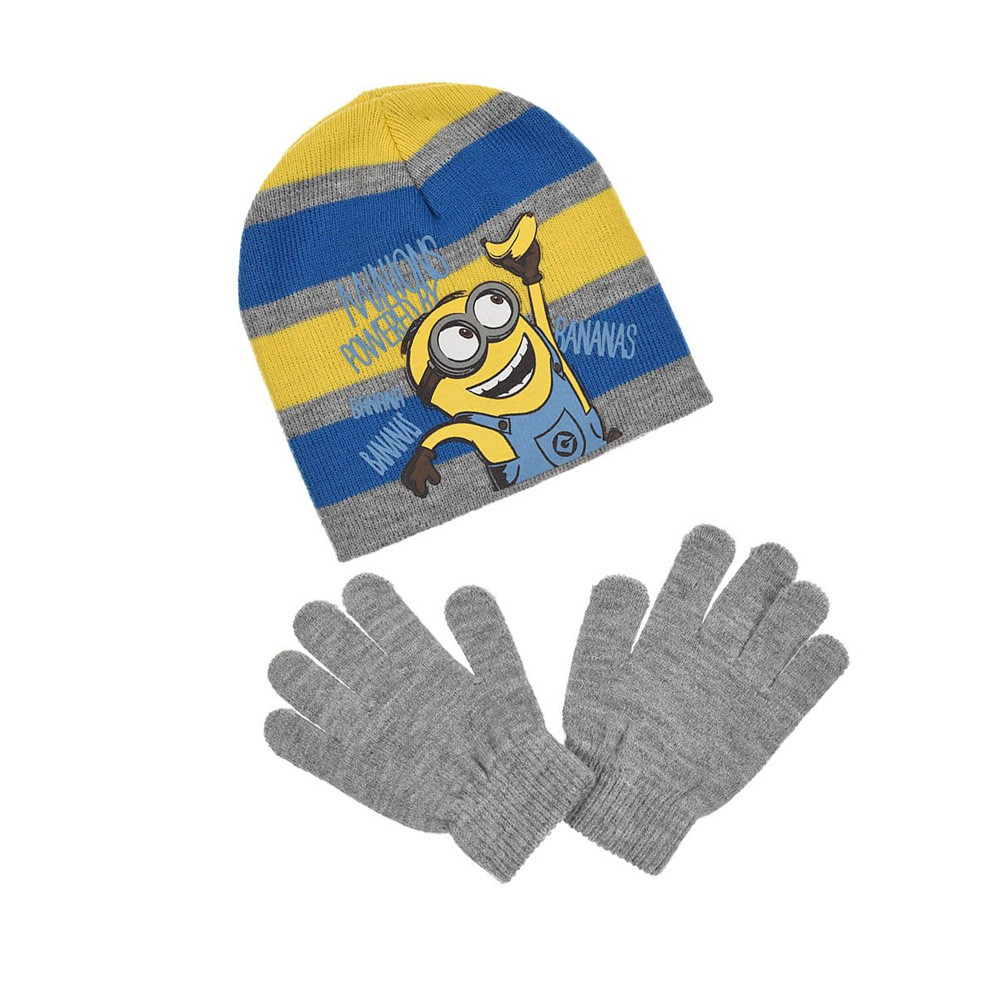 Três modelos sortidos de acessórios de Inverno, para fazer frente aos dias mais frios, composto de gorro + luvas Minions