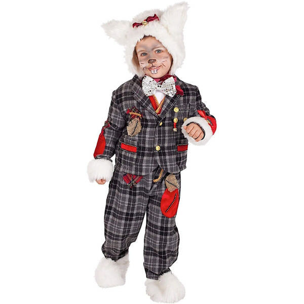 Inclui: calça e casaco com tecido xadrez de mistura de lã. Inclui, também, colete de veludo vermelho, gorro branco e tapa botas.