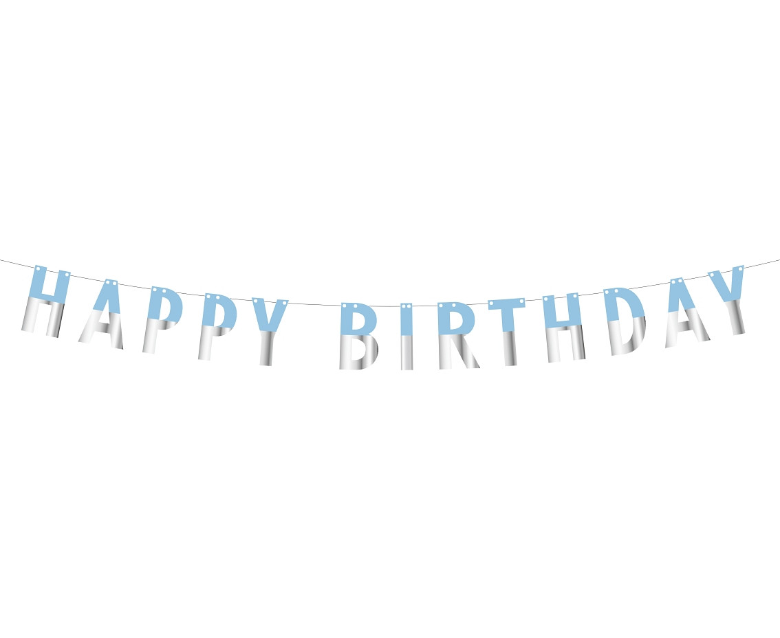 Grinalda Happy Birthday Azul Prateado