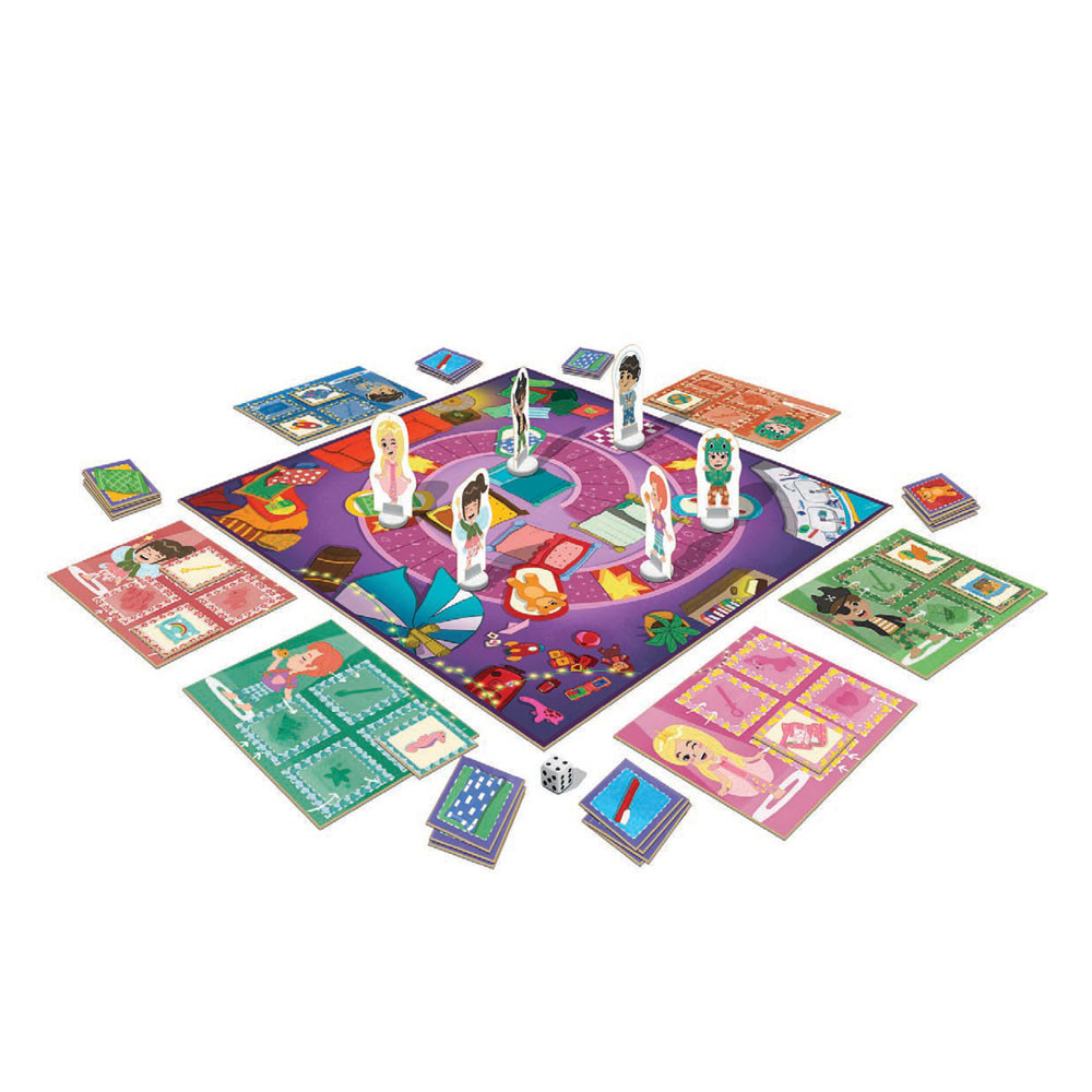Contém: 1 tabuleiro de jogo, 6 cartas de jogador, 24 cartas, 6 azulejos, 1 dado, regras do jogo