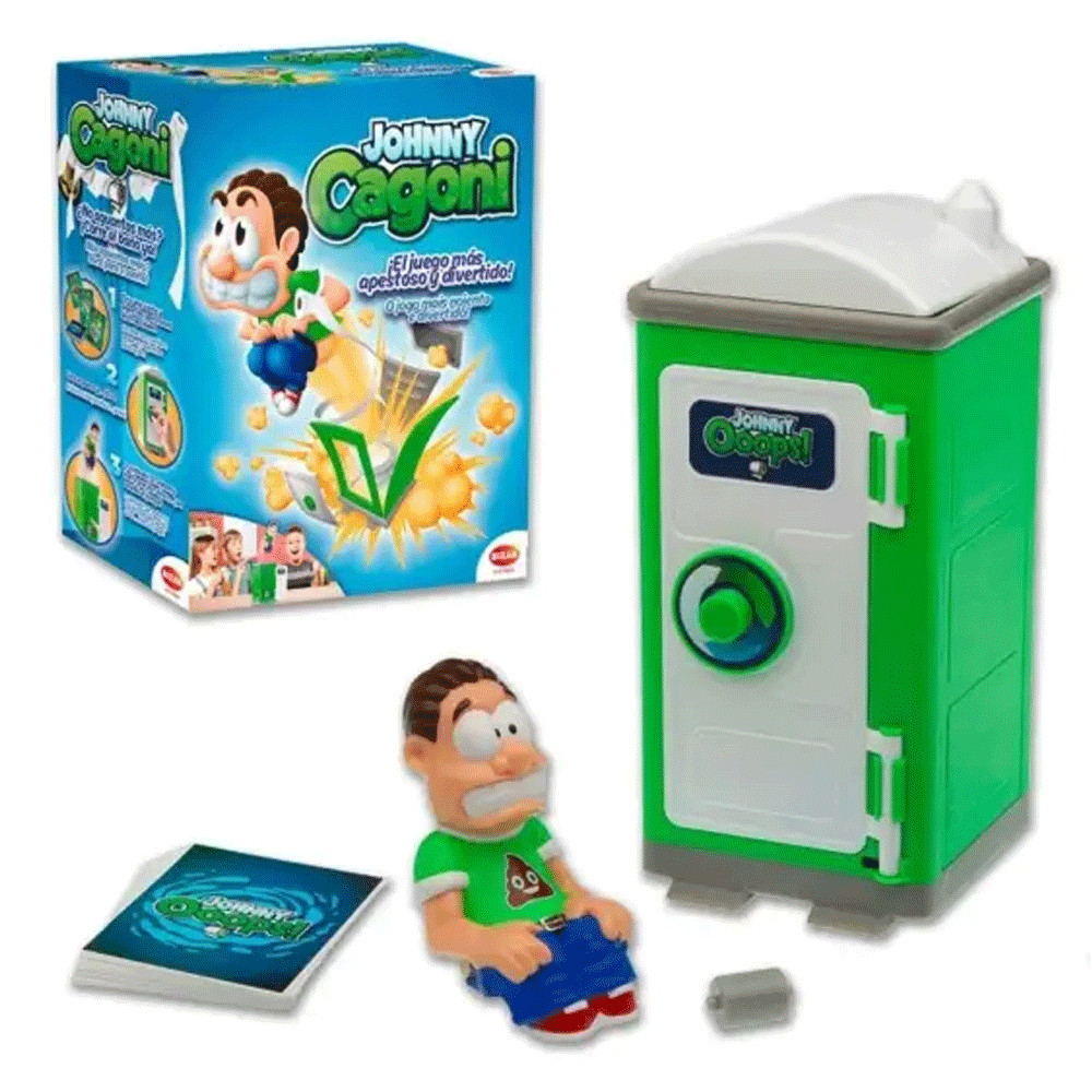 Não aguentas mais, corre já para a casa de banho! O Joãozinho Cagoni estará à tua espera… Larga uma carta, imita os peidos, roda o botão e… puxa!