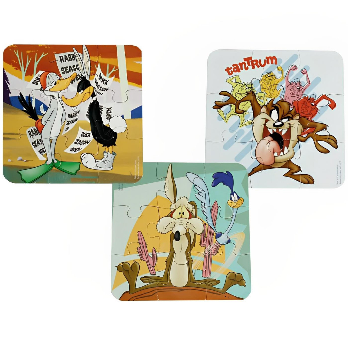 Puzzle sortido Looney Toones. Cada caixinha inclui 3 puzzles de 9 peças.