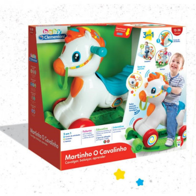 O Martinho é um cavalinho de quatro rodas resistente, falante que baloiça e cavalga.