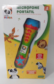 Microfone de mão colorido do Canal Panda fácil de transportar, com aplausos e efeitos sonoros especiais. Contém melodias pré-gravadas para cantar em karaoke.