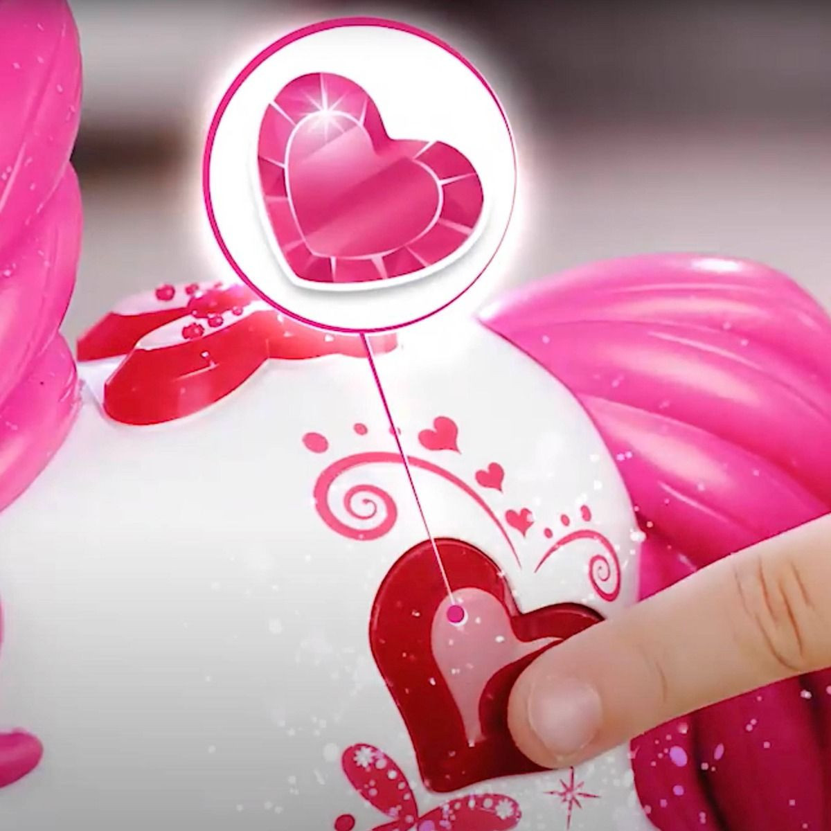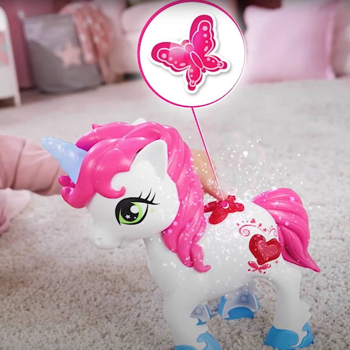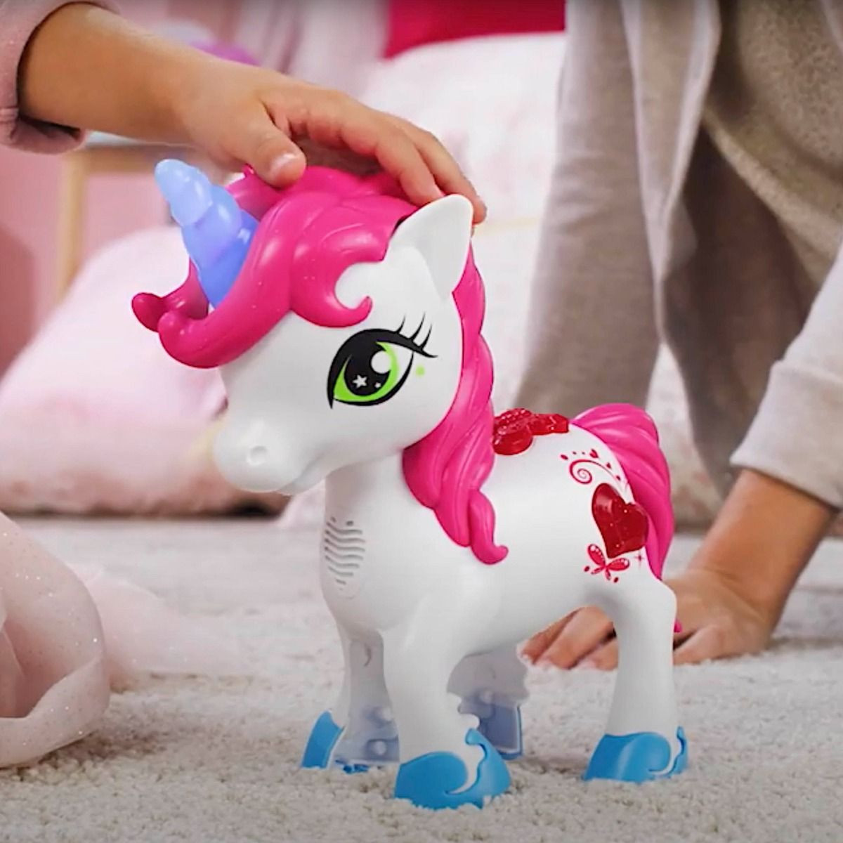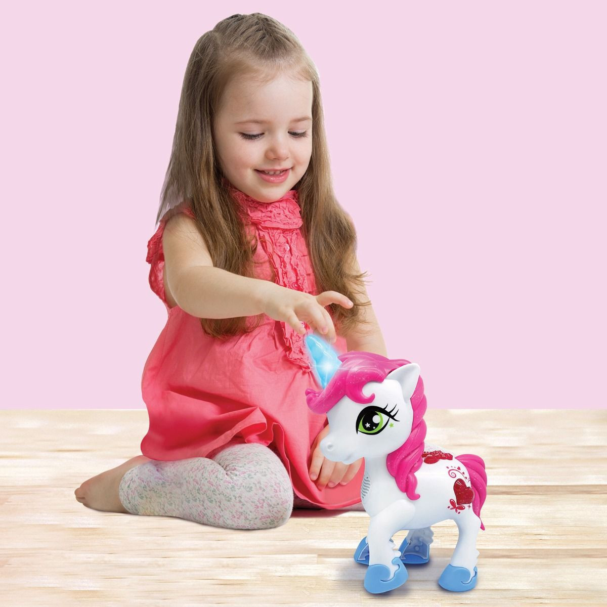 As suas patinhas fazem sons de galope como um verdadeiro unicórnio e o seu chifre ilumina-se quando lhe tocas!
