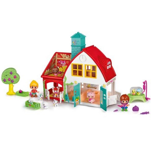 A Quinta Divertida de Pinypon inclui 11 figuras. Nunca antes houve tantas figuras num playset. Na parte de baixo da quinta está o estábulo e o curral; na parte de cima, a casa dos agricultores, com o galinheiro para os pintainhos e o galo. Os animais papás são Mix and Match, pelo que podes criar inúmeras combinações com eles.