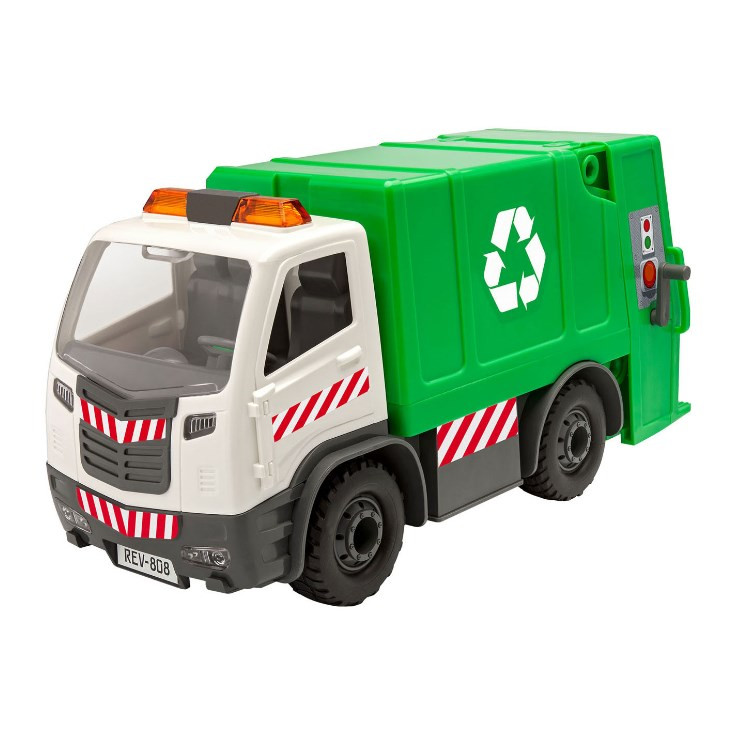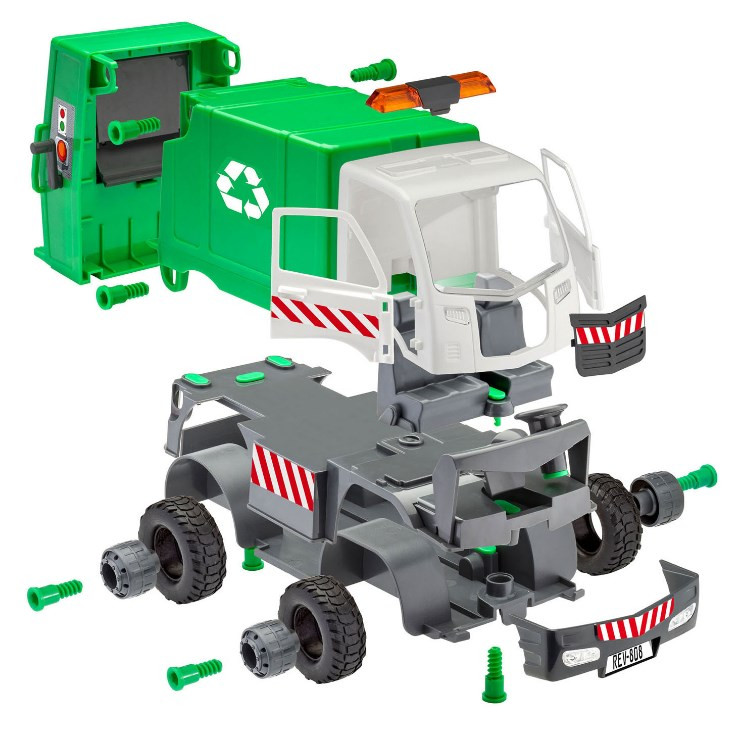 Usando a chave de fendas incluída, podes facilmente montar e desmontar todas as partes deste kit e construir este grande camião do lixo. Desta forma, as crianças trabalham o desenvolvimento das suas habilidades motoras finas duma forma lúdica. O Camião do Lixo Revell Junor Kit contém 49 peças diferentes, incluindo pára-choques, janelas, pneus todo-o-terreno, bancos, luzes intermitentes, lata de lixo e boneco.