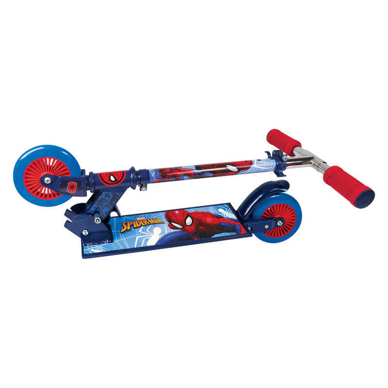 Em alumínio leve, com plataforma antiderrapante, travão na roda traseira e rodas de PVC duráveis.